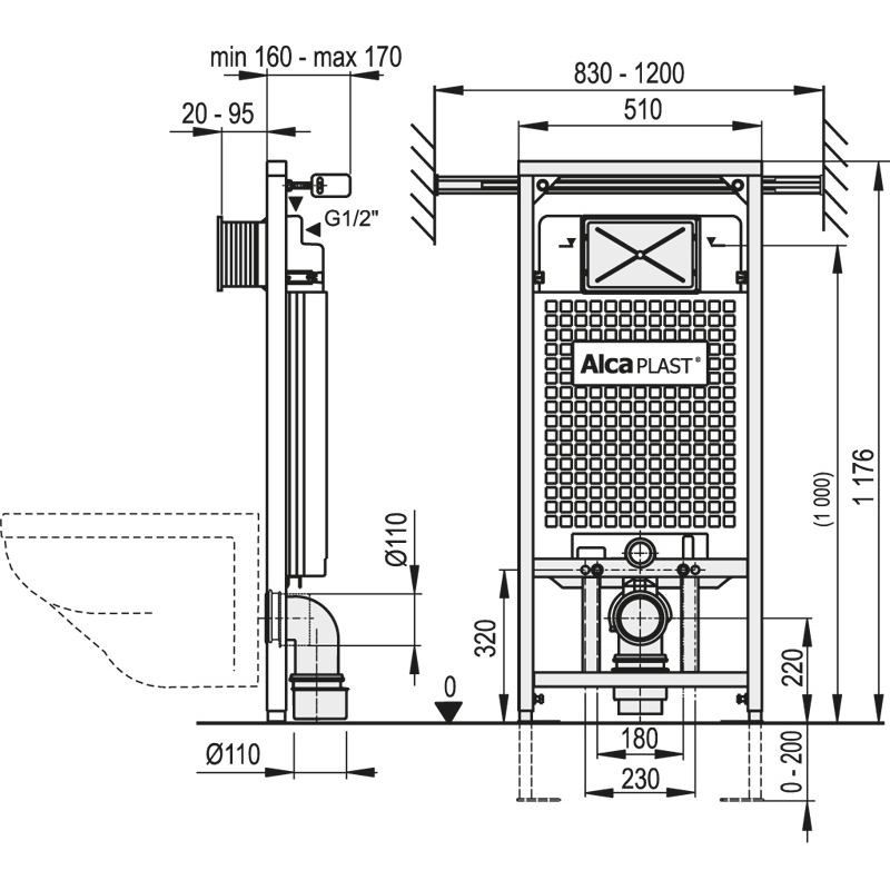 ALCAPLAST wc modul kod A102/1200 Jádromodul. Predstenový inštalačný systém pre suchú inštaláciu predovšetkým pri rekonštrukcii bytových jadier.