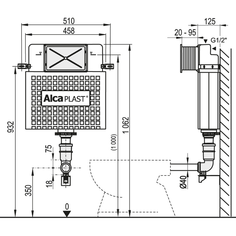 ALCAPLAST wc modul kod A112 Basicmodul. Wc nádržka pre zamurovanie.