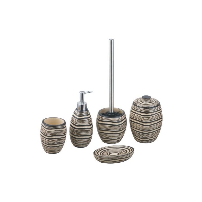 Skladá sa z: WC kefa, mydelnička, dávkovač na tekuté mydlo, pohárik, držiak kozmetických potrieb.