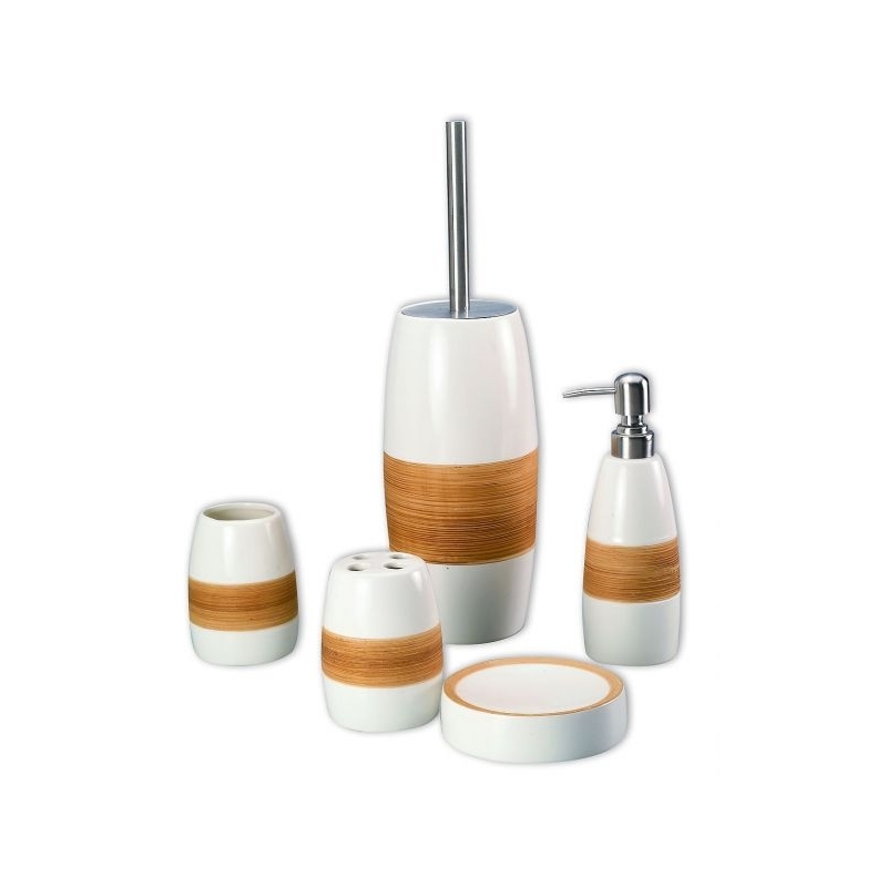 Skladá sa z: WC kefa , mydelnička, dávkovač na tekuté mydlo, pohárik, držiak kozmetických potrieb.