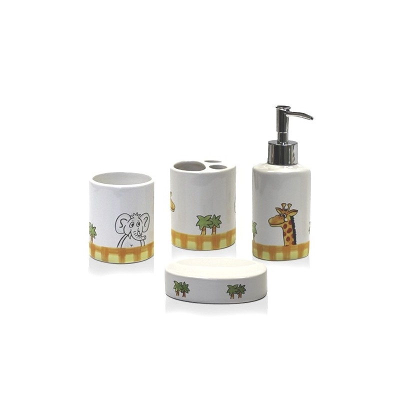 Skladá sa z: mydelnička, dávkovač na tekuté mydlo, pohárik, pohár na zubné kefky.