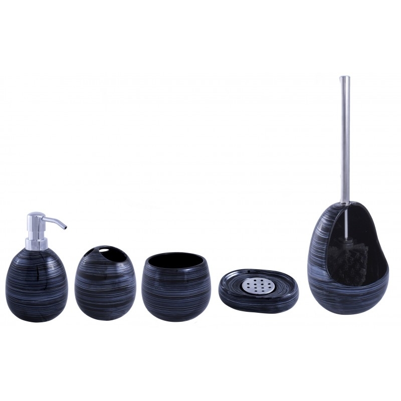 Skladá sa z: mydelnička, dávkovač na tekuté mydlo, pohárik, pohár na zubné kefky, WC kefa.