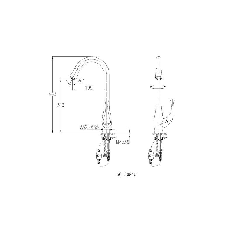 HOPA drezová batéria s vyťahovacou sprchou Carl kód BA503084C.