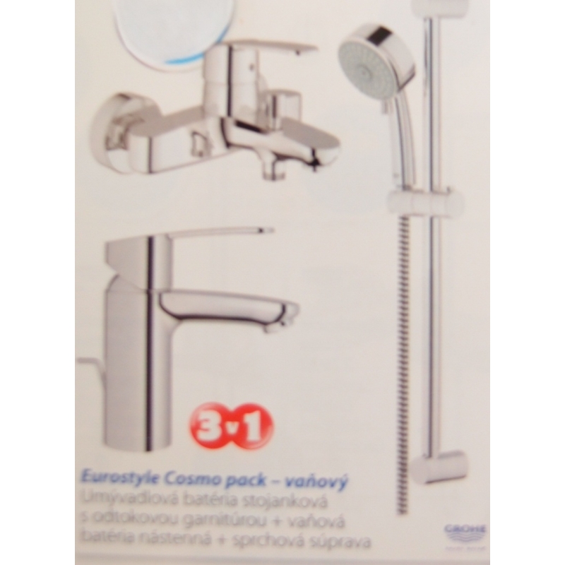 GROHE vaňový a sprchový set EUROSTYLE Cosmo PACK 3v1. Umývadlová batéria stojanková s odtokovou garnitúrou, vaňová batéria nástenná a sprchová súprava. Prevedenie chróm.