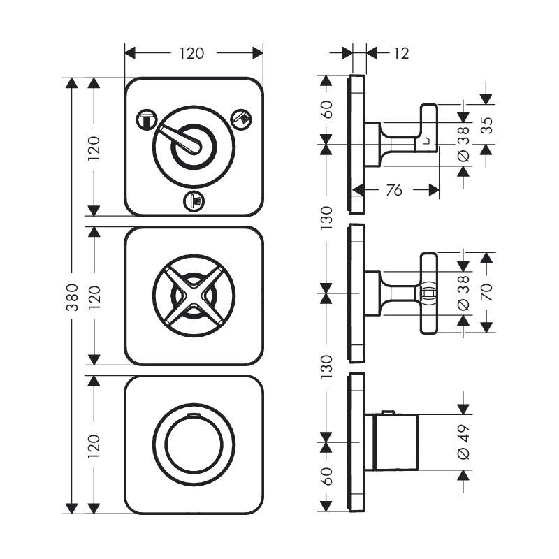 HANSGROHE Axor Citterio E, vrchná sada termostatického modulu pre 3 spotrebiče s 3 rozetami 12x12, chróm 36704000