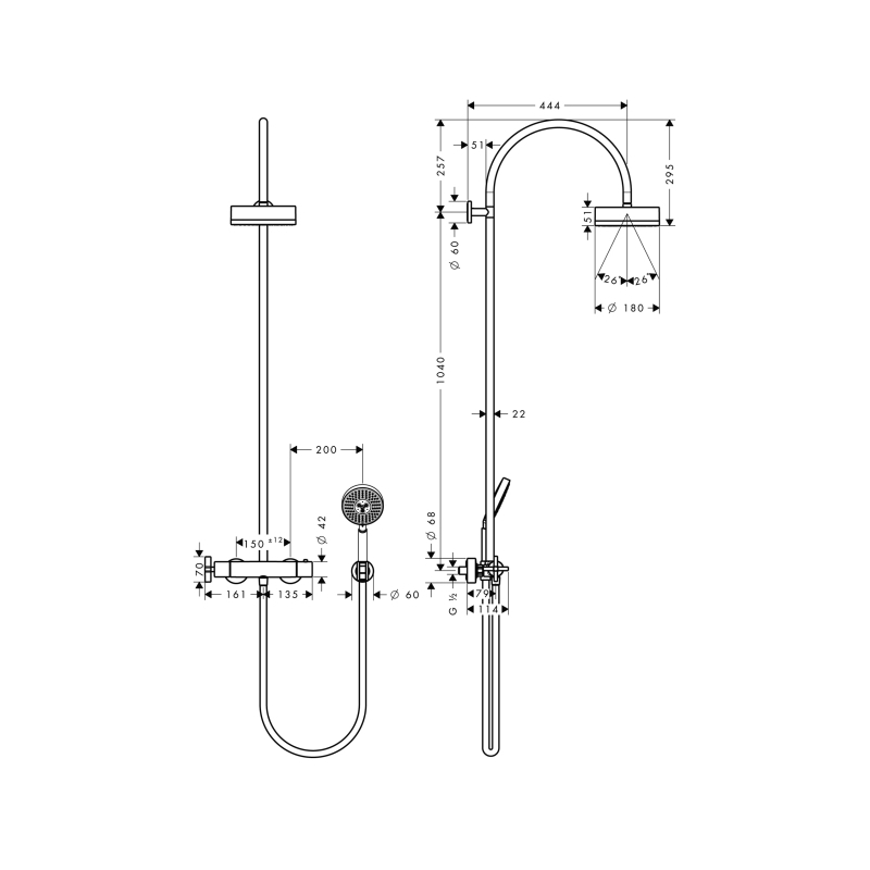Hansgrohe sprchová súprava Showerpipe s termostatom Axor Citterio chróm kód 39670000. DN15.