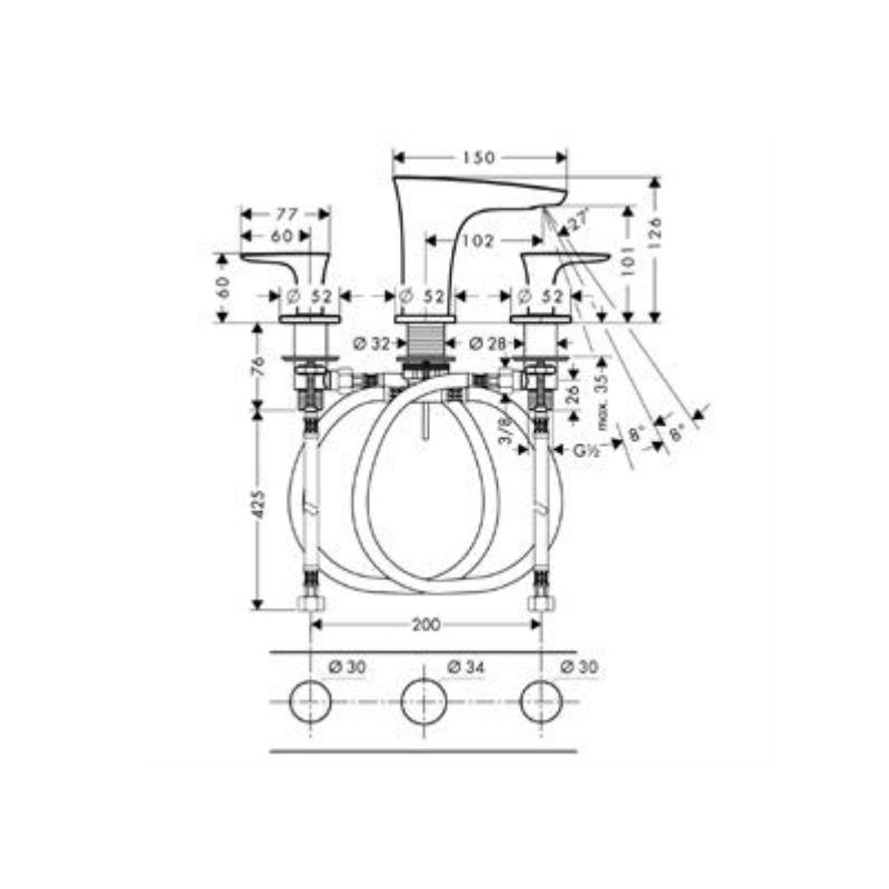 Hansgrohe trojotvorová umývadlová armatúra Pura Vida biela/chróm kód 15073400. DN15.