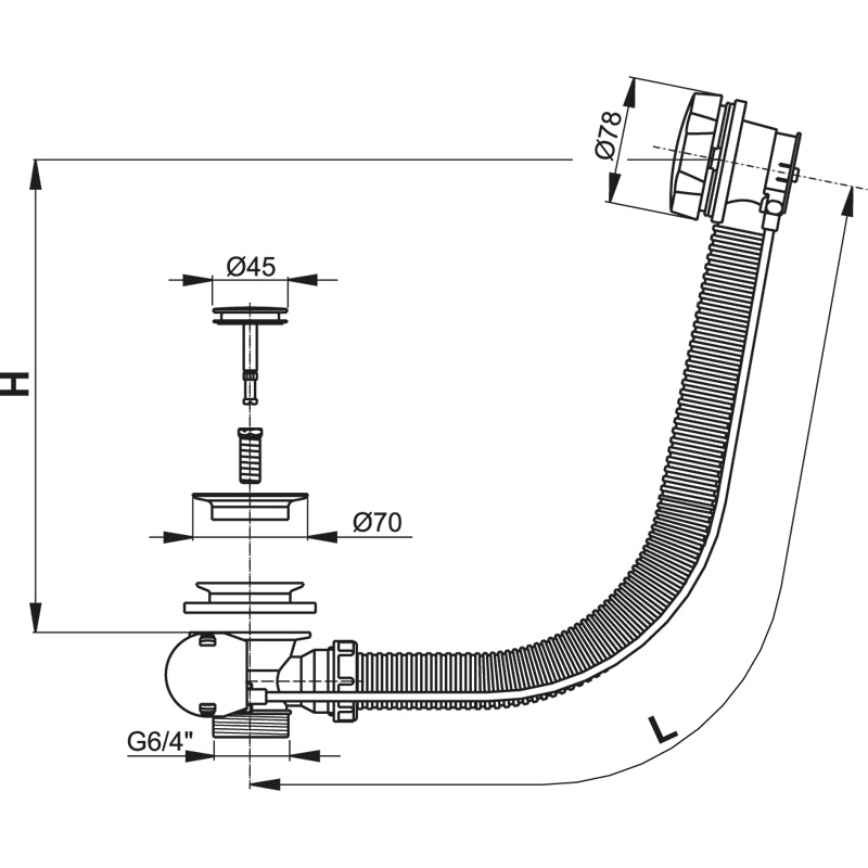 ALCAPLAST Sifón vaňový automat kov kod A56K