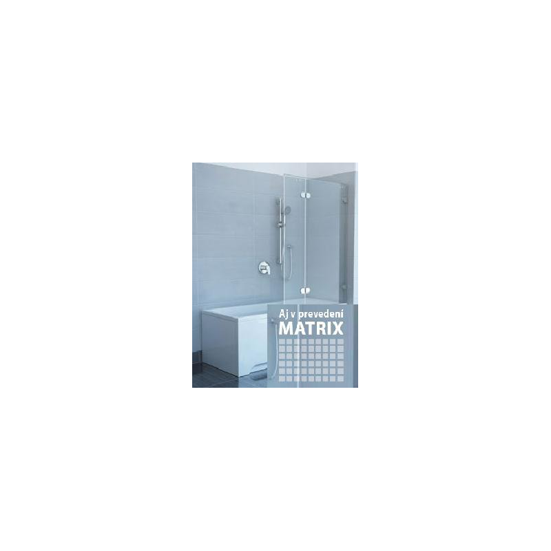 RAVAK GVS1 pevná vaňová zástena, jednodielna. Skladá sa z hranatých pántov (G SET Matrix) a z jedného pevného 6mm hrubého transparentného skla. Rozmery: 795-805x1400mm. Cena je za komplet.