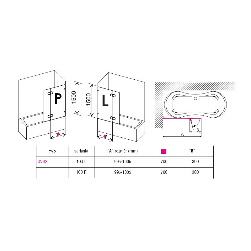 RAVAK GVS1 pevná vaňová zástena, jednodielna. Skladá sa z hranatých pántov (G SET Matrix) a z jedného pevného 6mm hrubého transparentného skla. Rozmery: 800x1400mm. Cena je za komplet.