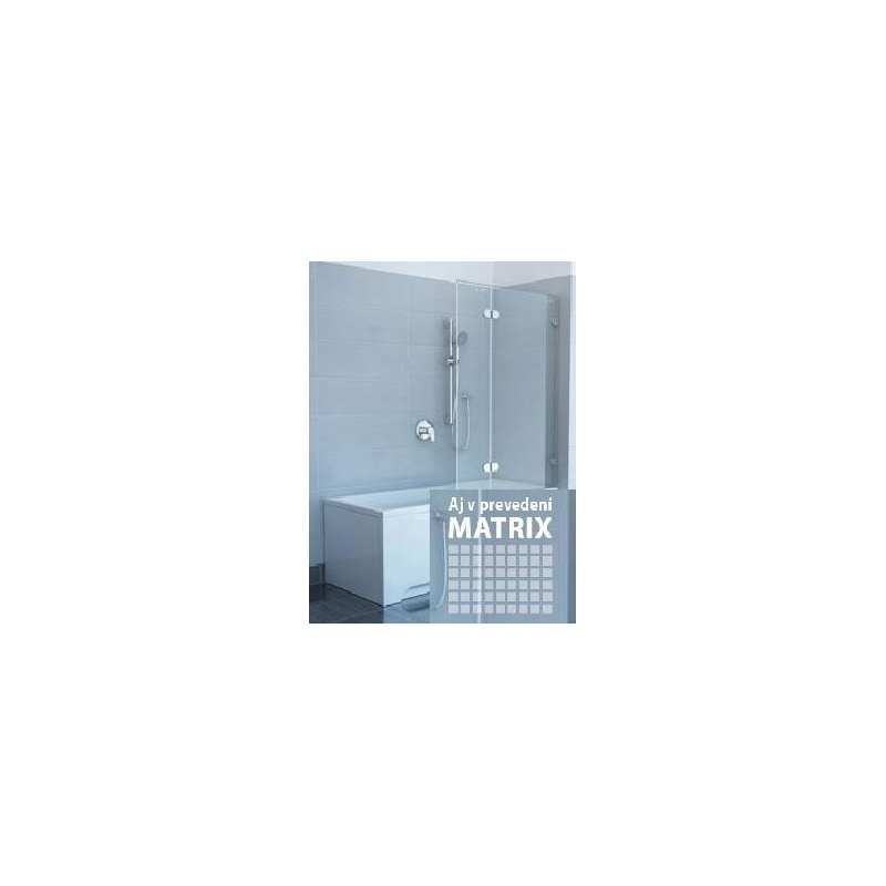 RAVAK GVS2 100 L/R MATRIX vaňová zástena, dvojdielna. Skladá sa z jedného pevného a jedného pohyblivého dielu, ktorý je možné vyklopiť von z vane. Hrúbka skla pevnej časti je 8 mm a pohyblivej časti 6 mm. Variant ľavý a variant pravý. Rozmery: 995-1005x1500 mm. Cena je za komplet.