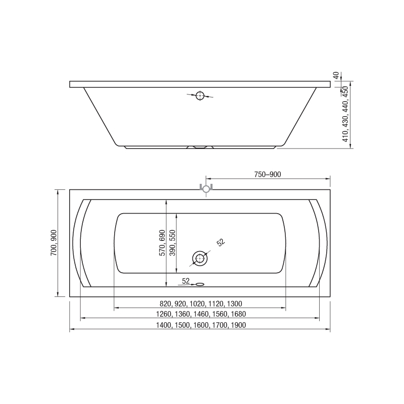 HOPA klasická vaňa CASERTA 140 x 70 cm kód VANCAS140. Objedm 130l. Možnosť doobjednania: čelný panel, bočný panel