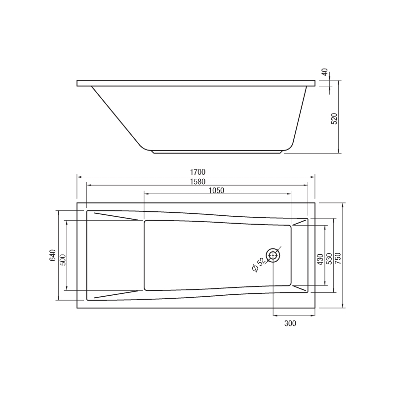 HOPA klasická vaňa MODENA 170 x 75 cm kód VANMOD17. Objem 170 l. Materiál: 100% akrylát, antibakteriálny povrch. Výška čelného panela: 64 + okraj vane 4 cm