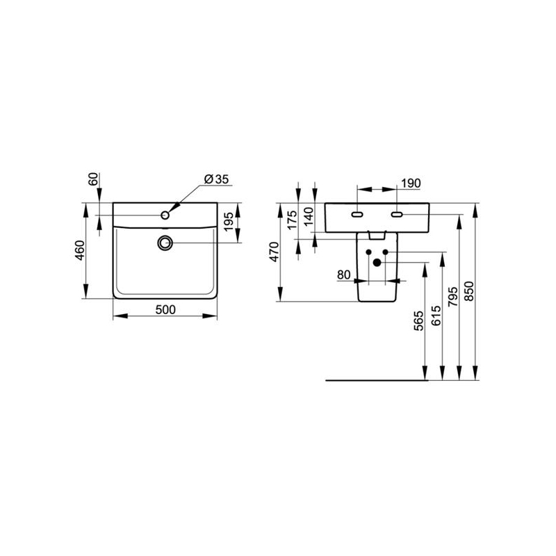 IDEAL STANDARD CONNECT CUBE umývadlo E713801 50 x 46 cm