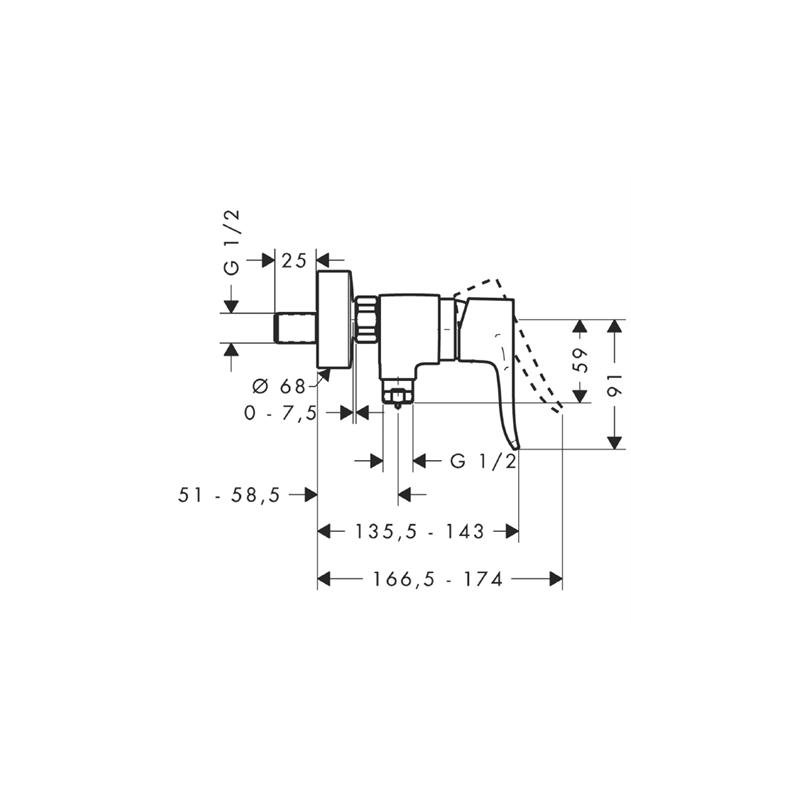 Hansgrohe páková sprchová batéria na stenu Metris chróm kód 31680000. DN15.