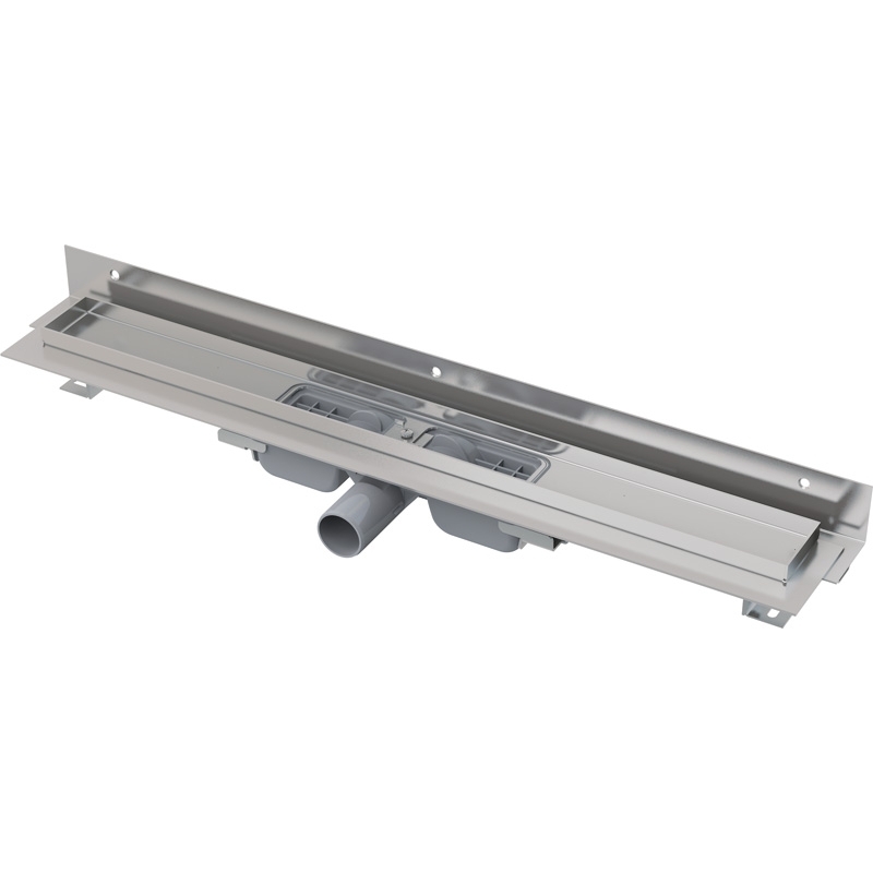 ALCAPLAST líniový podlahový žľab znížený APZ104 Flexible Low kod APZ104-950. Podlahový žľab s okrajom pre perforovaný rošt a s nastaviteľným límcom ku stene.