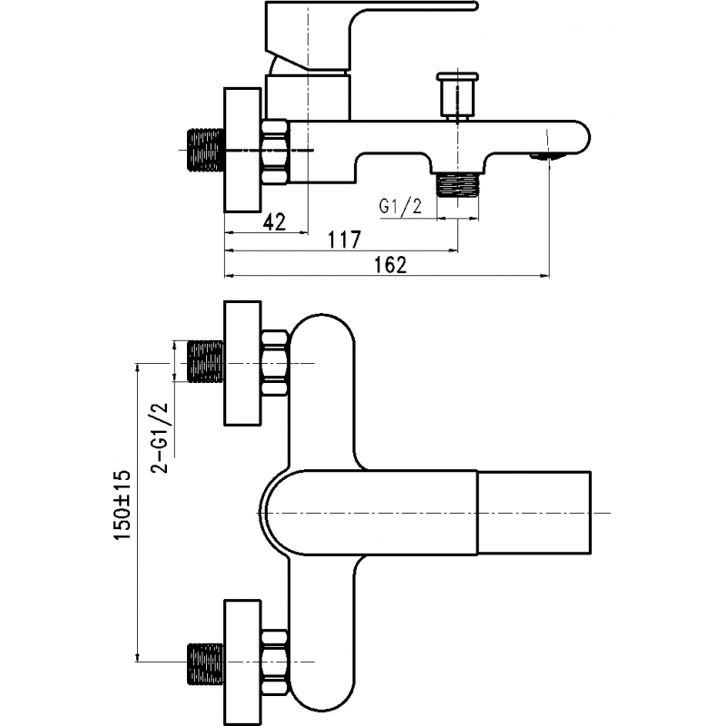 Vaňová nástenná batéria bez sprchovej súpravy 150 mm