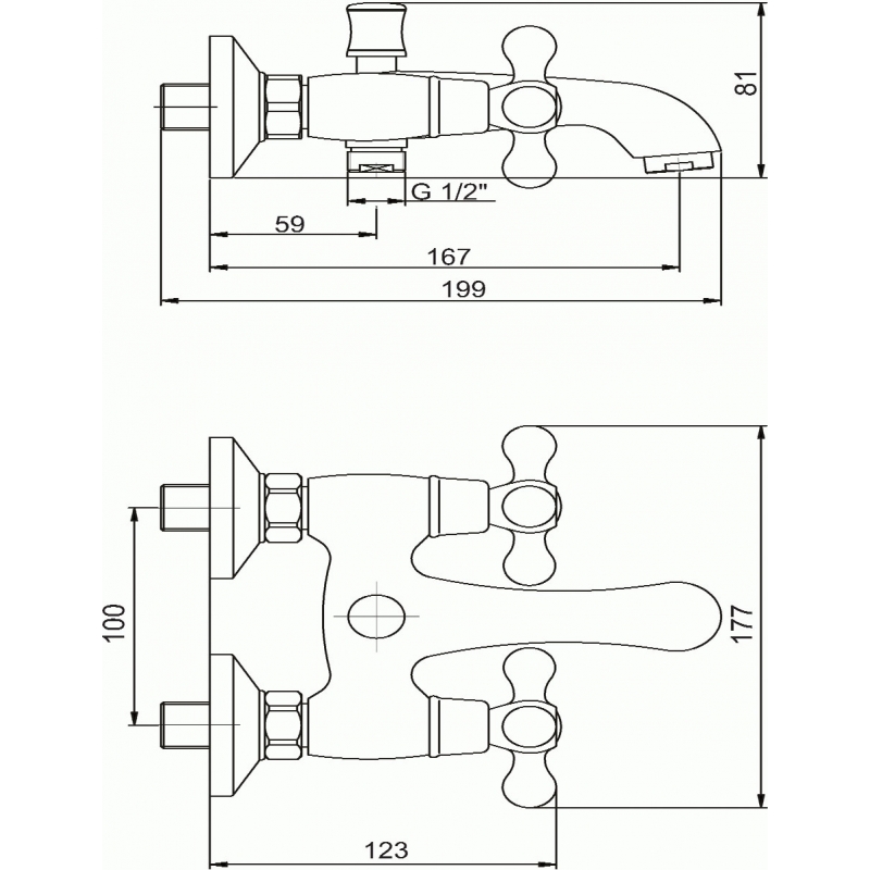 Vaňová batéria bez príslušenstva 100 mm Retro II chróm