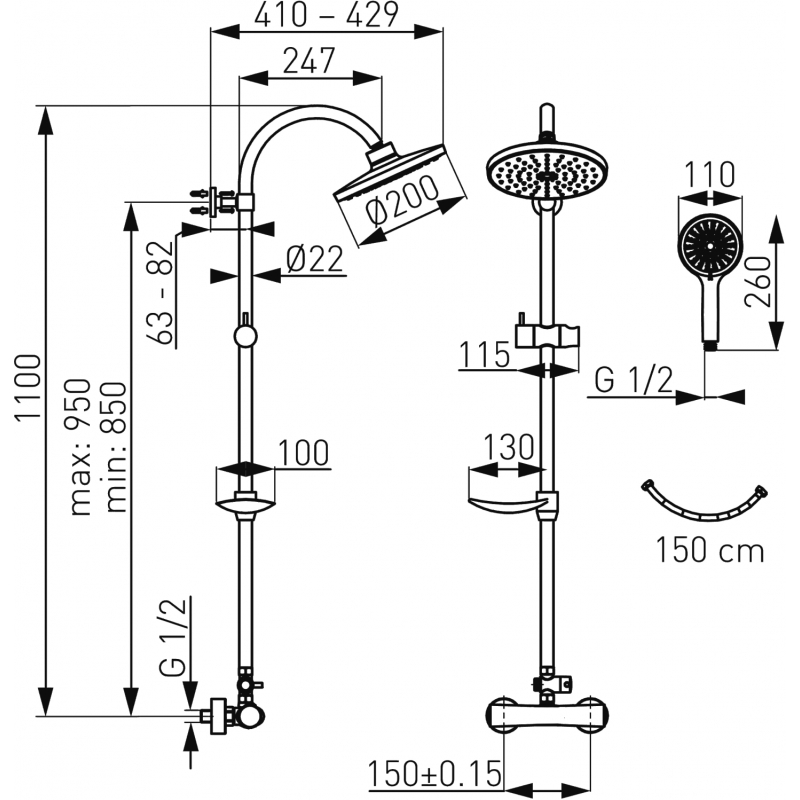 Sprchová súprava+sprchová term.batéria s horným vývodom 2962