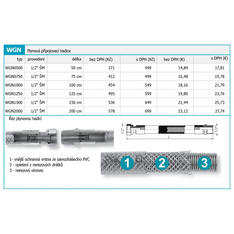 Znížená cena! Plynová pripojovacia hadica 1/2" ŠM-0,5m Zväčšiť