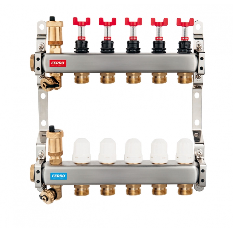 Rozdeľovač nerez s prietokomermi a uzat.ventilmi, 8-okruhov