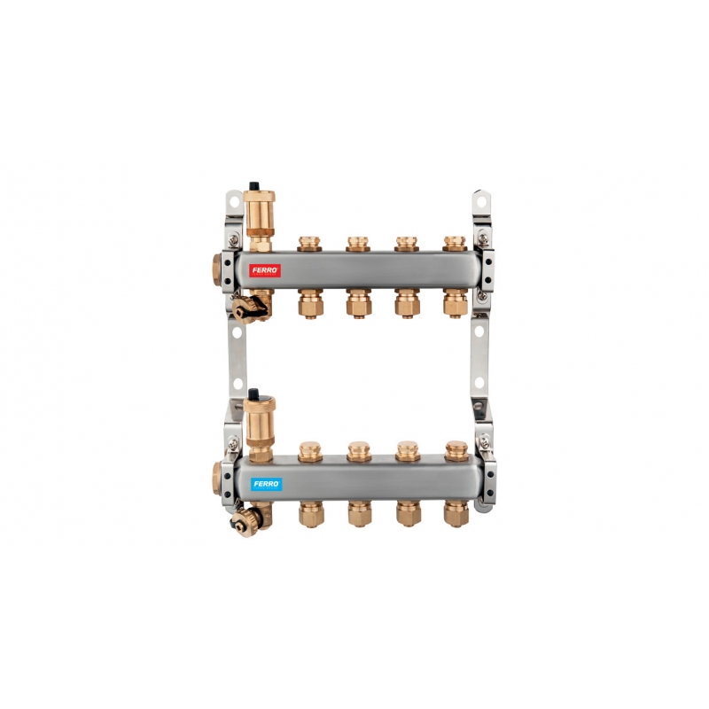 Rozdeľovač nerez s regulačnými mechanickými ventilmi 4okruhy