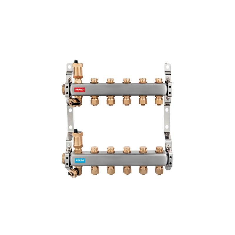 Rozdeľovač nerez s regulačnými mechanickými ventilmi 5okruhy