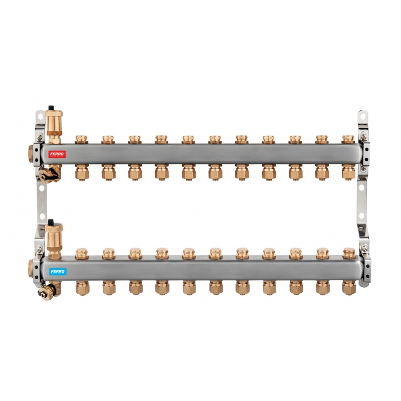 Rozdeľovač nerez regulačnými mechanickými ventilmi 11okruhy