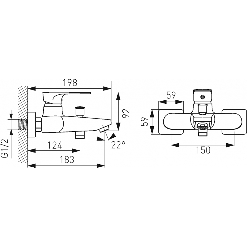 Nástenná vaňová batéria bez sprchovej súpravy, chróm