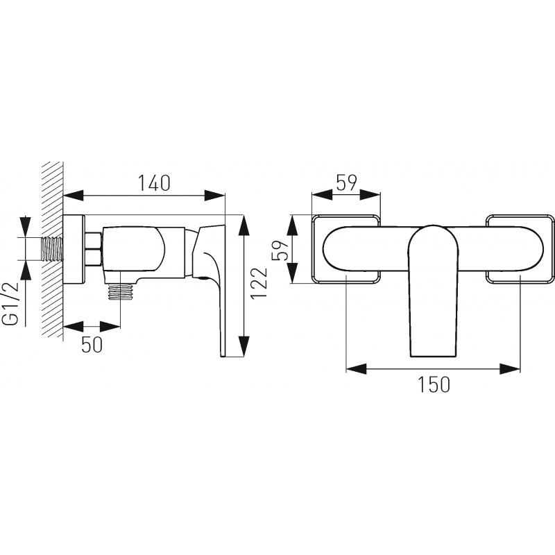 Sprchová nástenná batéria bez sprchovej súpravy, chróm