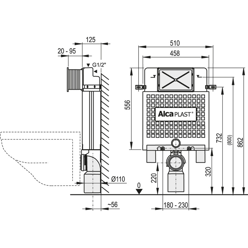 ALCAPLAST wc modul kod A100/850 Alcamodul. Predstenový inštalačný systém pre zabudovanie.
