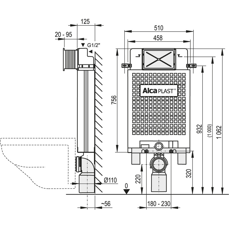ALCAPLAST wc modul kod A100/1000 Alcamodul. Predstenový inštalačný systém pre zamurovanie