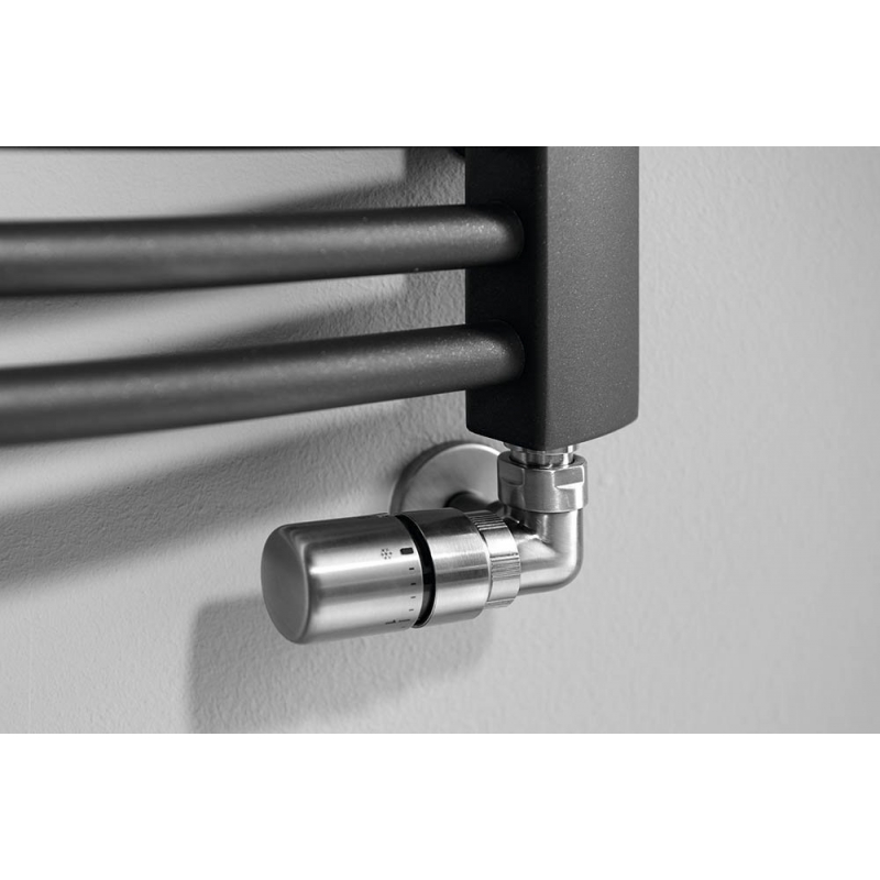 RADA! Sada CORNER je k dispozícii v prevedení pravá / ľavá varianta. Na obrázku vyššie je vidieť variant pravá - prívod teplej vody je napravo, taktiež aj samotná termo hlavica je umiestnená napravo (vždy pri čelnom pohľade). Odporúčame výber ventilu tak, aby hlavica vždy smerovala v smere vodorovných profilov vykurovacieho telesa a nie na opačnú stranu (mimo kúrenie). Triaxiálne vyhotovenie ventilu umožňuje schovať hlavicu ventilu pod radiátor, a tak nezaberá miesto v priestore.