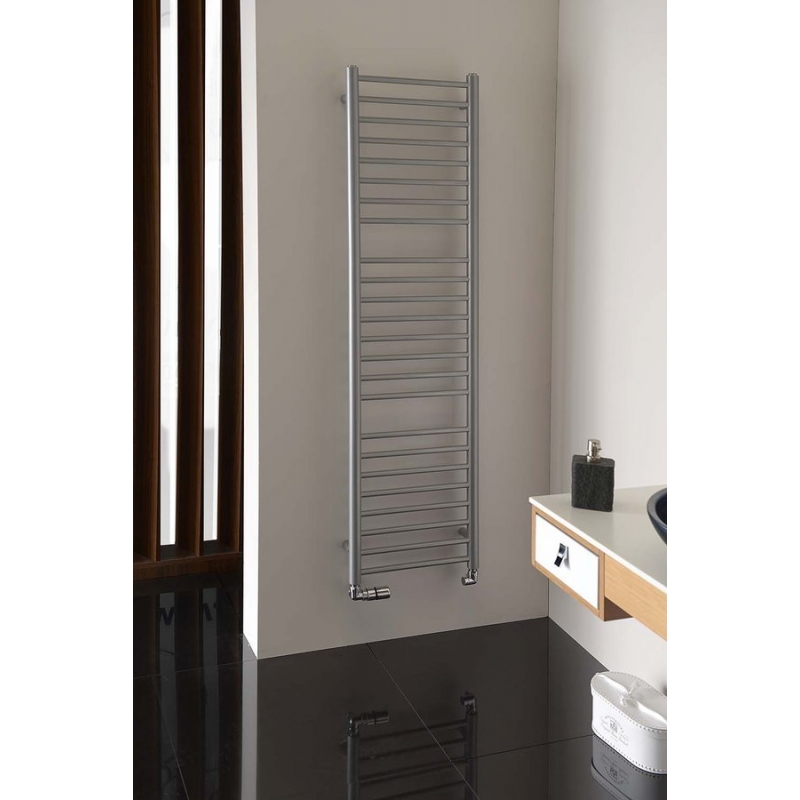 Elegantný kúpeľňový radiátor zo správne kombinovaných priemerov vodorovných a zvislých rúrok. Krása v jednoduchosti skĺbená s atraktívnym farebným prevedením.