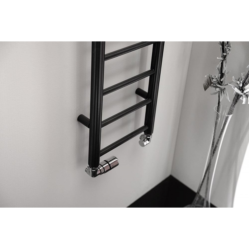 Elegantný kúpeľňový radiátor zo správne kombinovaných priemerov vodorovných a zvislých rúrok. Krása v jednoduchosti skĺbená s atraktívnym farebným prevedením.