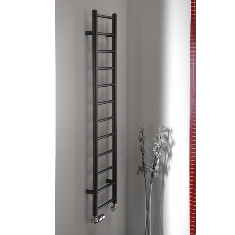 Elegantný kúpeľňový radiátor zo správne kombinovaných priemerov vodorovných a zvislých rúrok. Krása v jednoduchosti skĺbená s atraktívnym farebným prevedením.