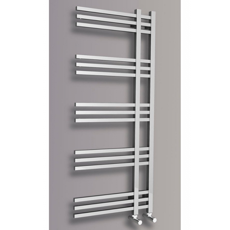 Dizajnovo tvarované kúpeľňové vykurovacie teleso s výnimočným vzhľadom je vyrobené z pochrómovaných oceľových rúrok. Radiátor možno zavesiť obojstranne.