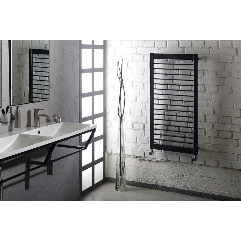 Vykurovacie teleso s neobvykle orientovanými plochými rúrkami (hrúbka len 10 mm) podčiarkne hranatý dizajn Vašej kúpeľne. Možná kombinácia ústredného a elektrického vykurovania.