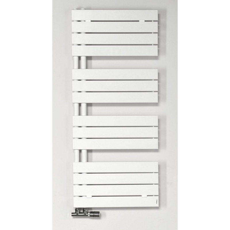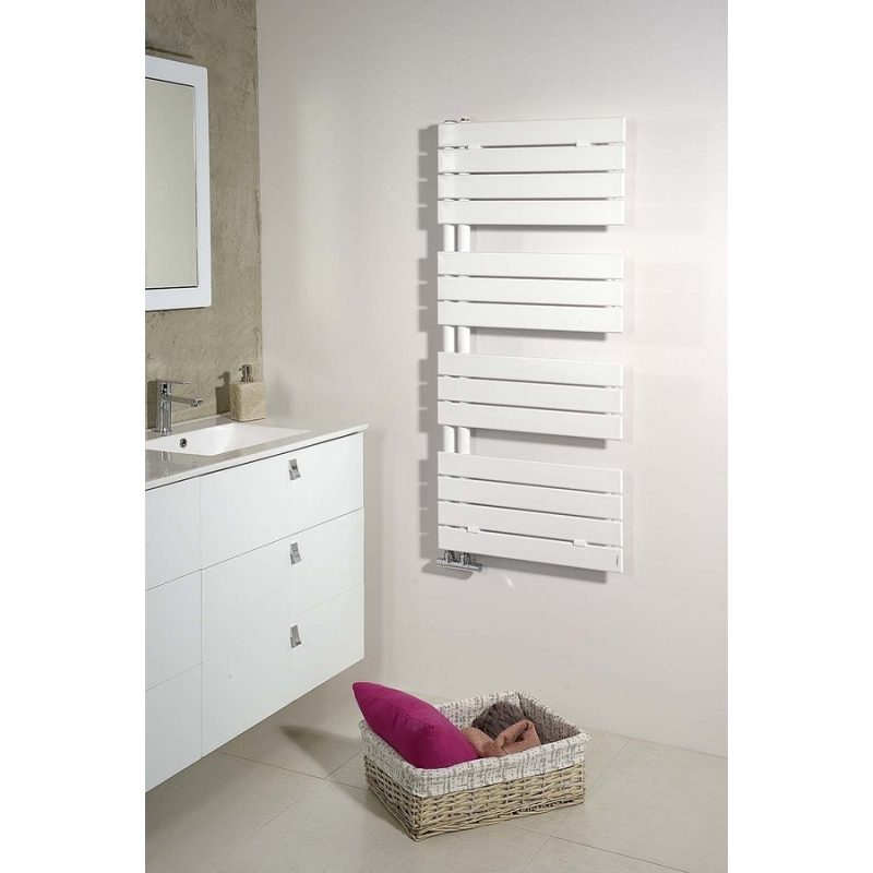 Štýlový radiátor z hladkých zaoblených oceľových profilov. Obľúbené asymetrické prevedenie, ktoré je maximálne praktické pre manipuláciu s osuškami. Radiátor možno zavesiť obojstranne a môžete si tak zvoliť ľavú alebo pravú variantu inštalácie.