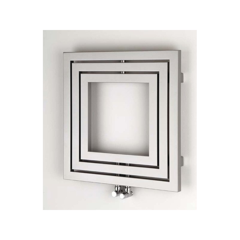 Dekoratívne radiátor v modernom hranatom dizajne so stredovým pripojením. Nemožno inštalovať vykurovaciu tyč.