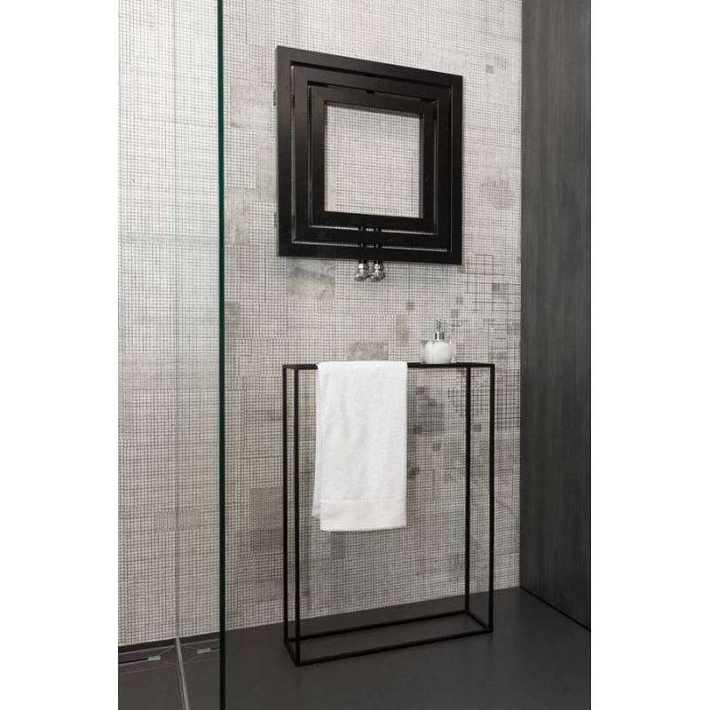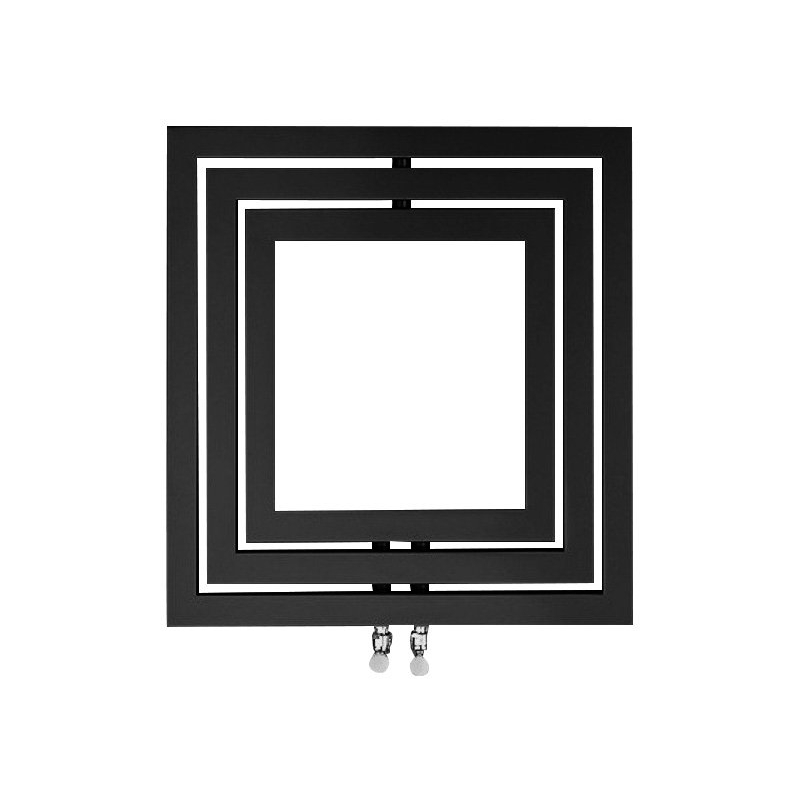 Dekoratívne radiátor v modernom hranatom dizajne so stredovým pripojením. Nemožno inštalovať vykurovaciu tyč.