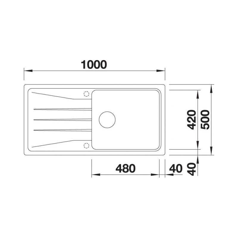 Obojstranný silgranitový drez s priestrannou vaničkou s hĺbkou 190/100 mm. Ide o jednodrez s vaničkou a odkvapom s rozmermi 1000 x 500 x 190 mm a výrezom 980 x 480 mm. Drez je určený výhradne na montáž na dosku s minimálnou šírkou skrinky 60 cm. Dodávka taktiež obsahuje odtokovú armatúru, 3 ½ výpusť so sitkom a 4 predvŕtané otvory.