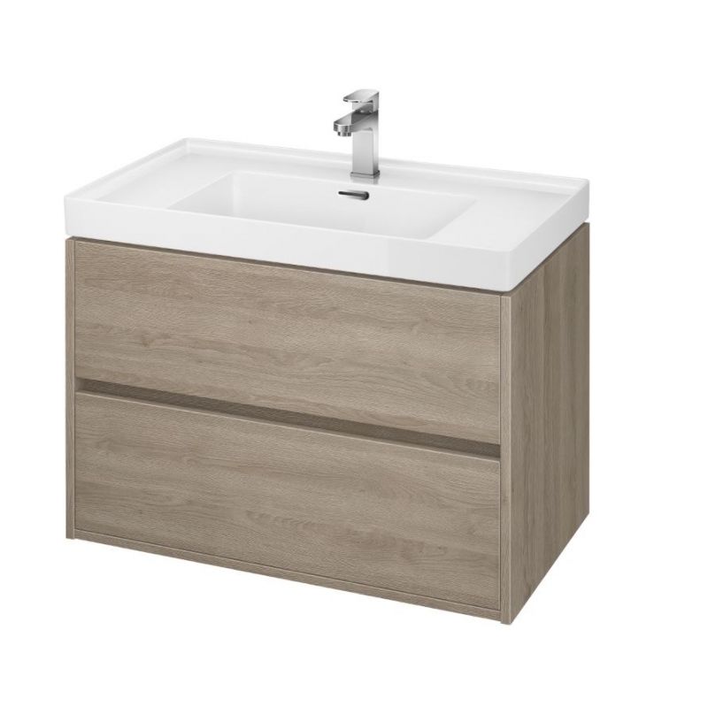 Závesná umývadlová skrinka CREA 80 s dvoma výsuvnými boxmi v prevedení dub. Je vyrobená modernou technológiou AQUASAFE / zvýšená odolnosť proti vlhkosti /. Skrinka pôsobí elegantným vzhľadom vďaka zapusteniu prednej časti a využitie skrytých madiel.