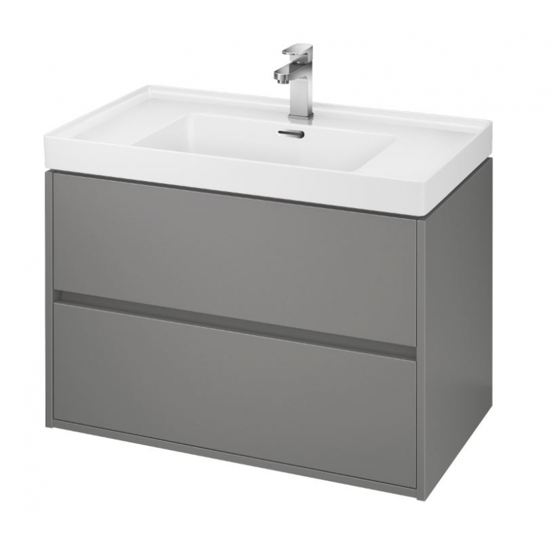 Závesná umývadlová skrinka CREA 80 s dvoma výsuvnými boxmi v šedom prevedení. Je vyrobená modernou technológiou AQUASAFE / zvýšená odolnosť proti vlhkosti /. Skrinka pôsobí elegantným vzhľadom vďaka zapusteniu prednej časti a využitie skrytých madiel.