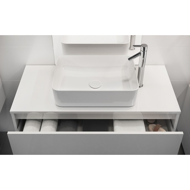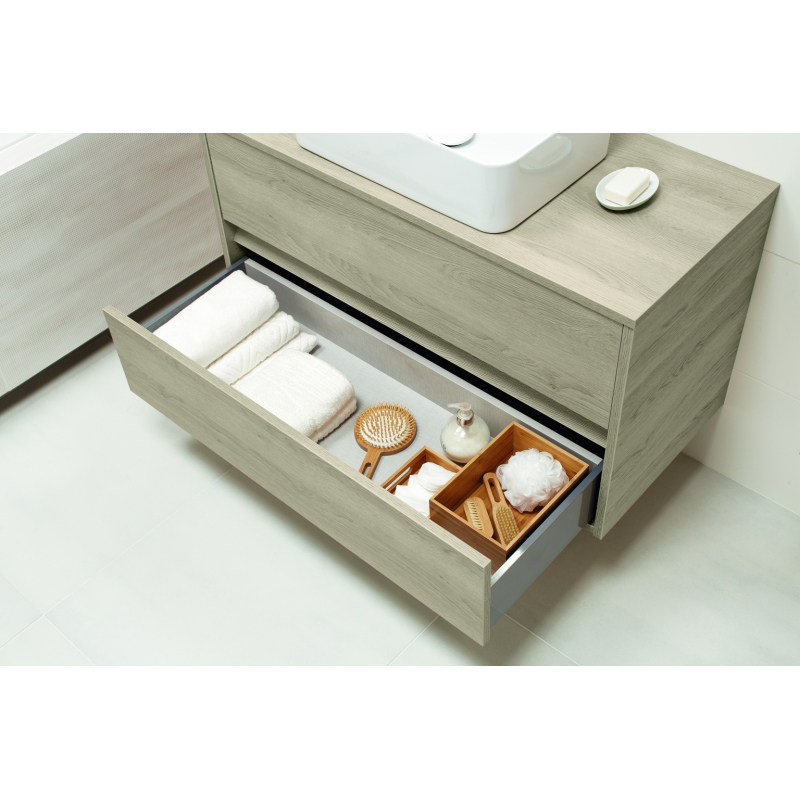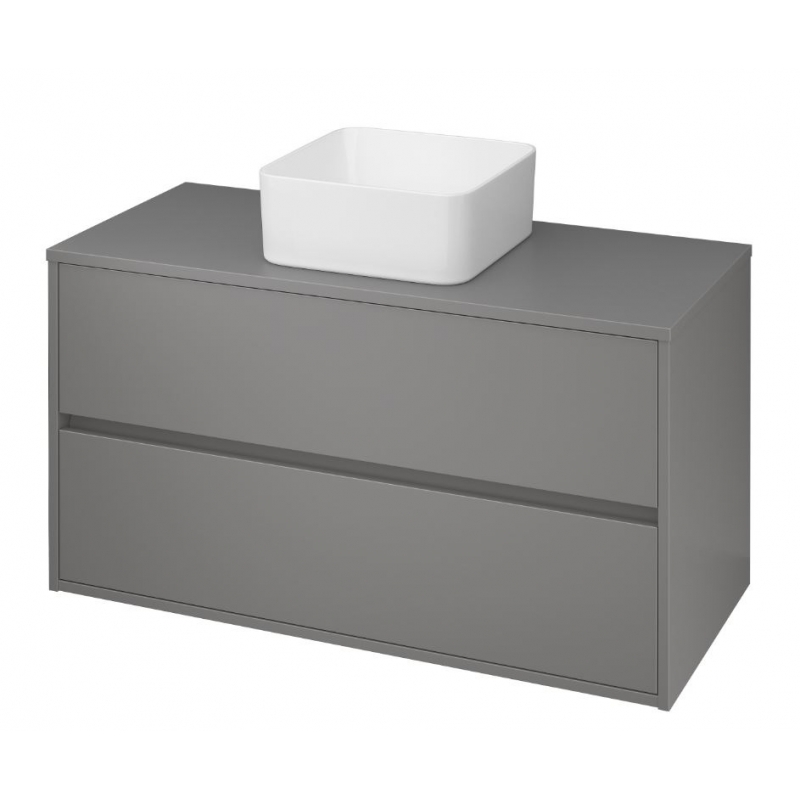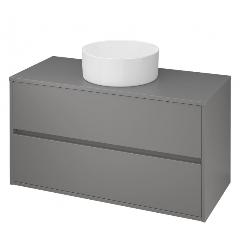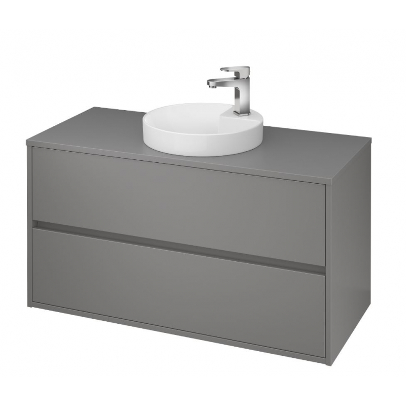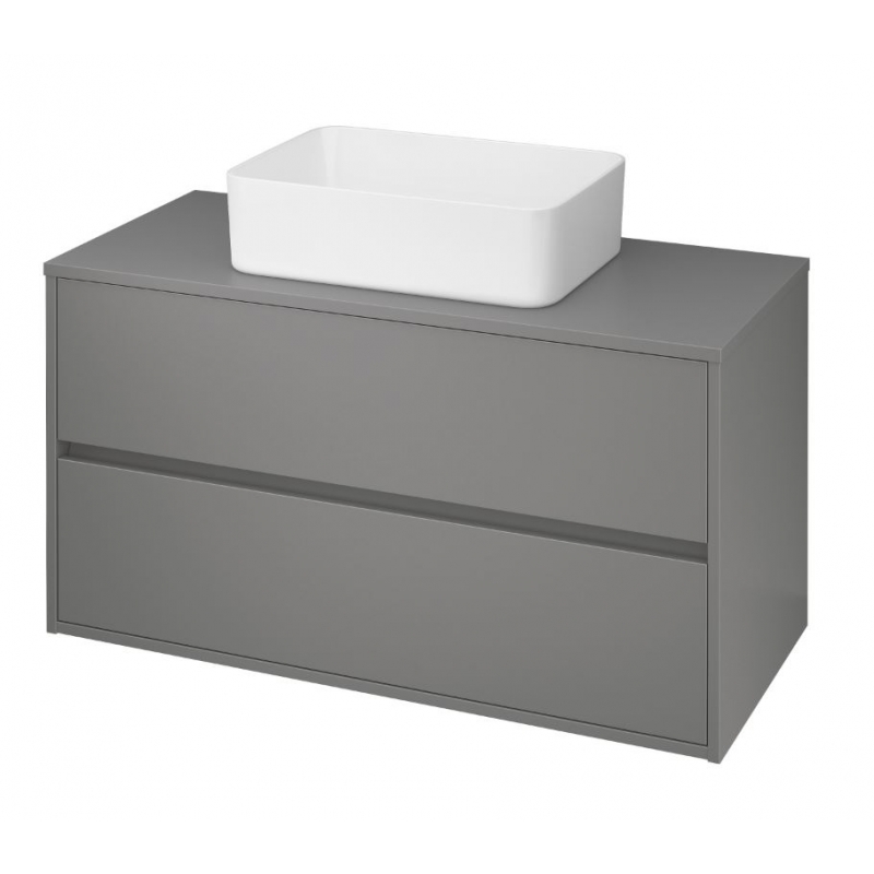 Závesná umývadlová skrinka CREA 100 na dosku s dvoma výsuvnými boxmi s prednou časťou v šedom prevedení. Stolová verzia vám umožňuje vytvoriť moderný interiér pomocou vyhrievaných umývadiel CREA s tenkou stenou.