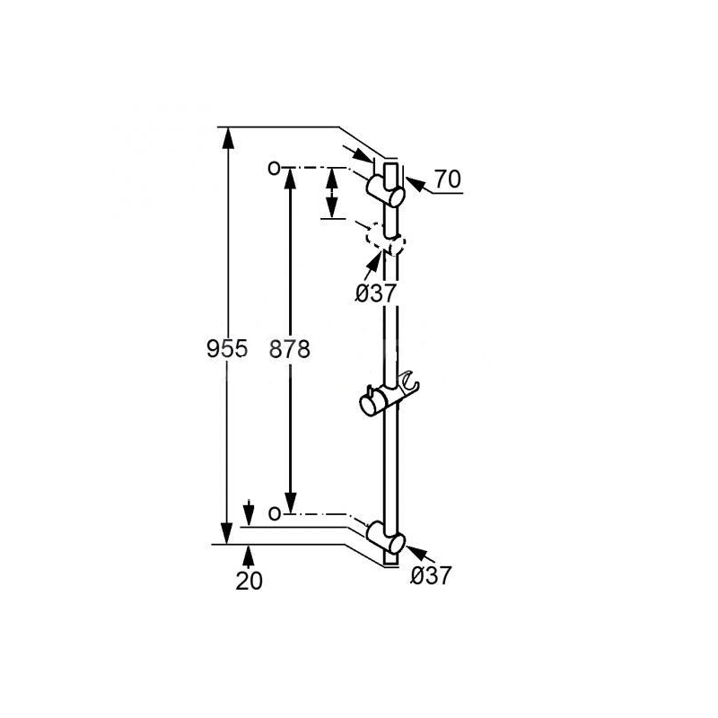 KLUDI kovova sprchova nástenná tyč A-QA chróm kód 6564105-00. Prevedenie chróm.