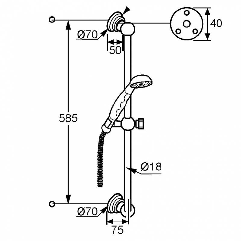 posuvný držiak, sprchová hadica G 1/2 x G 1/2 x 1600 mm