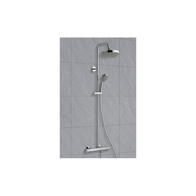 ALPI sprchový set CITY termostat komplet chróm kód CI612151CR + CI61376CR. Obsahuje: termostatická batéria, hadica, tyč, ružica, sprchová hlava Ø 200 mm, umývadlová stojanková batéria.