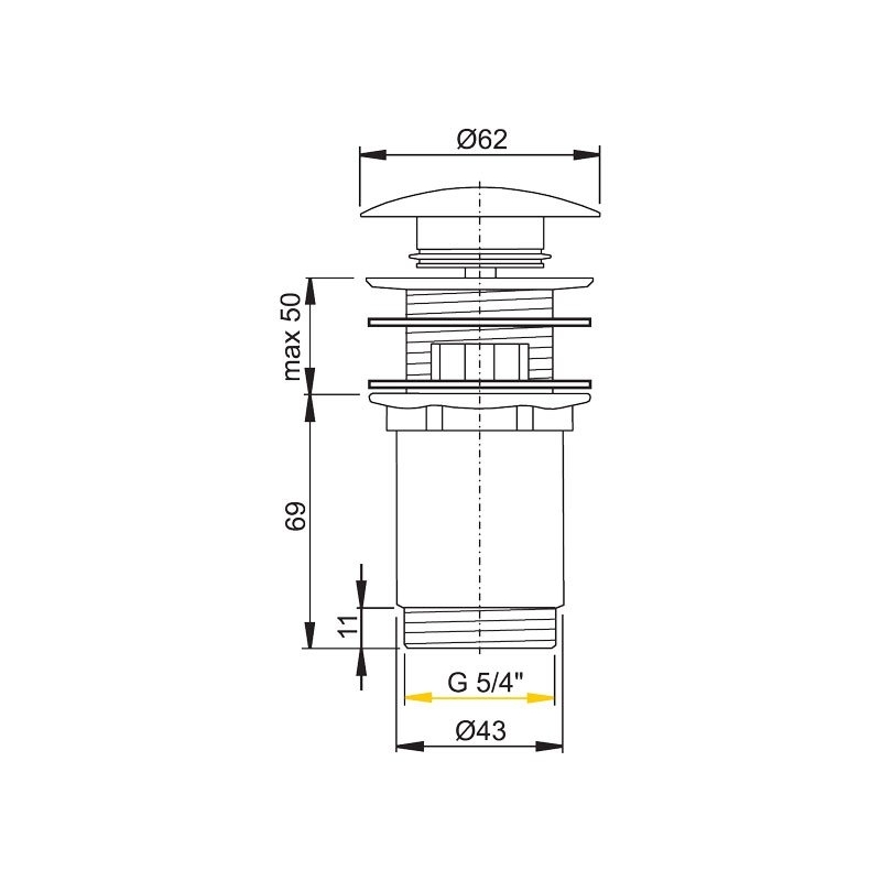 ALCAPLAST Výpusť umývadlová click/clack 5/4" celokovová, kod A392