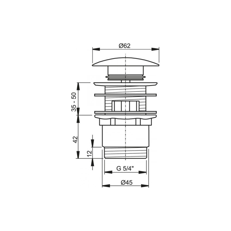 ALCAPLAST Výpusť umývadlová click/clack 5/4“ celokovová, veľká zátka, kod A390